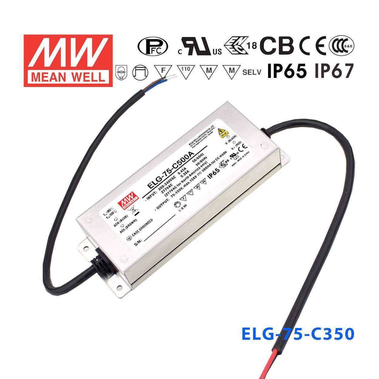 Mean Well ELG - 75 - C350 Power Supply 75W 350mA - ELG - 75 - C350 - powersupplymall.com