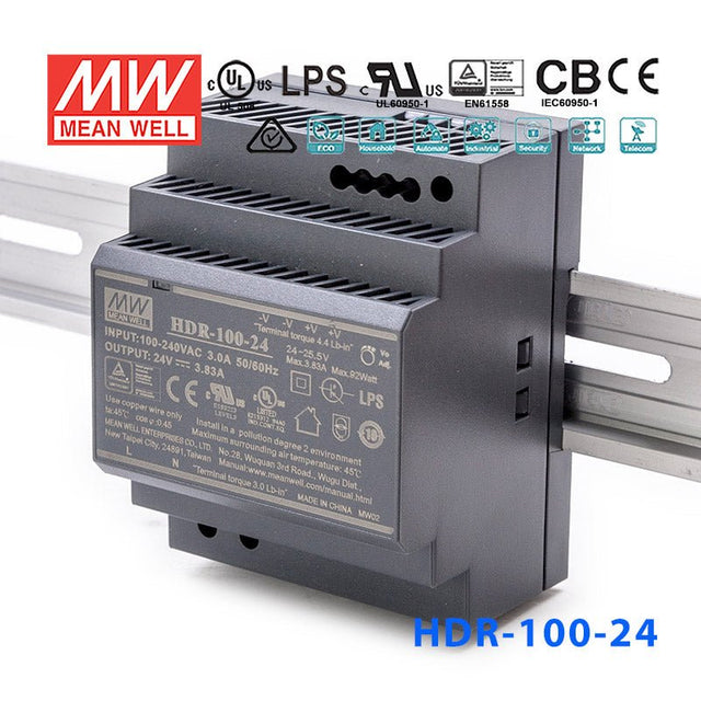 Mean Well HDR-100-24 Ultra Slim Step Shape Power Supply 100W 24V - DIN Rail