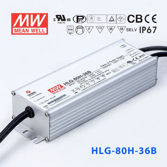 Mean Well HLG-80H-36AB Power Supply 80W 36V - Adjustable and Dimmable